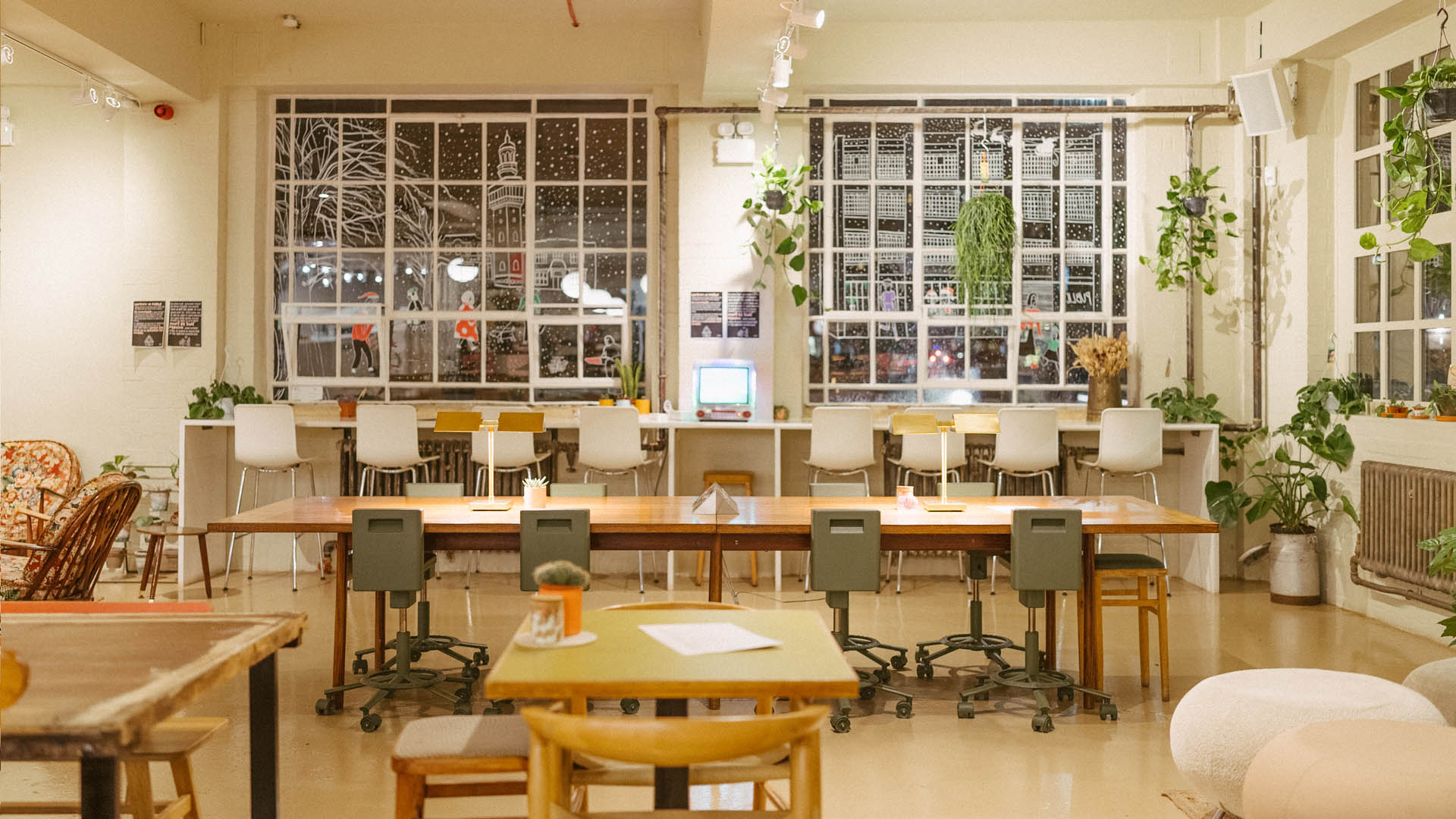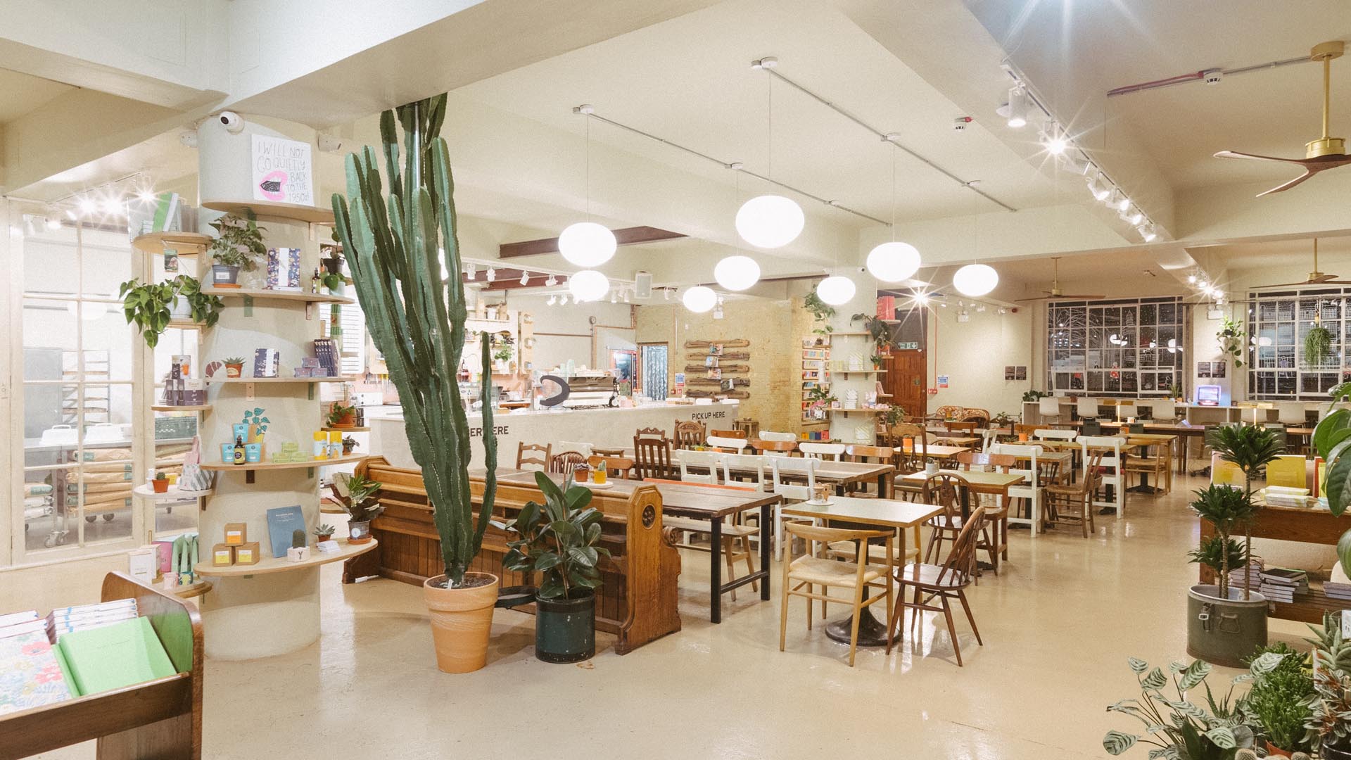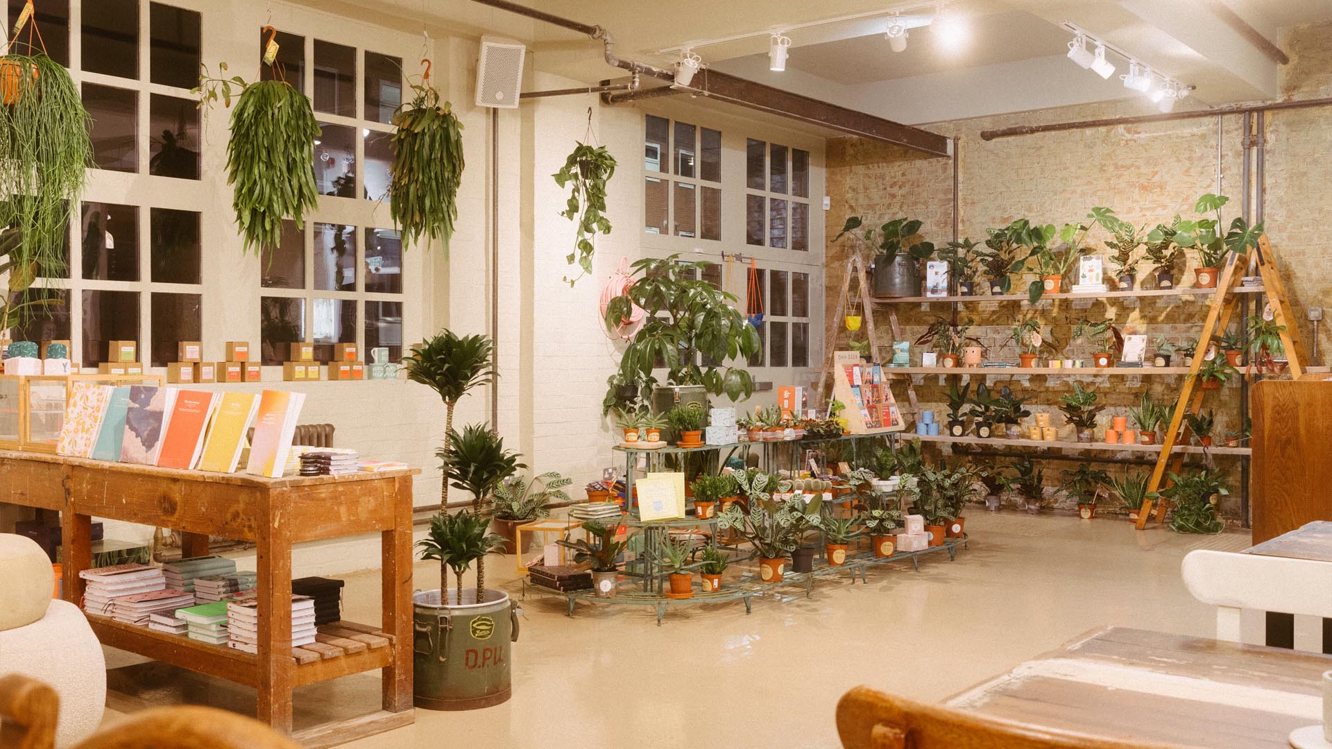 The first Public and Plants café transforms the ground floor of Loughborough’s Old Arts College into a place where work, food, and greenery flow together. The design takes cues from the energy of a school canteen—open, communal, and always buzzing. An open plan layout that ties the café, co-work, and plant shop into one enviroment, letting people move easily between browsing, meeting, and taking a break. The result is a warm, lived-in space that brings the historic building back to being a daily gathering point.
